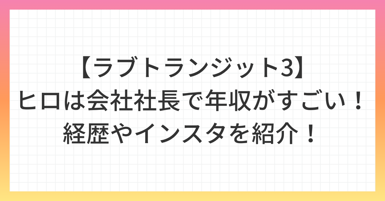 【ラブトランジット3】ヒロは会社社長で年収がすごい!経歴やインスタを紹介!