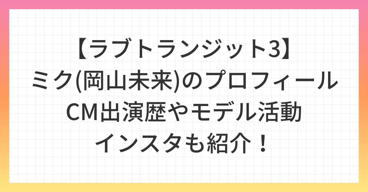 【ラブトランジット3】ミク(岡山未来)の経歴!モデル・CM出演歴がすごい