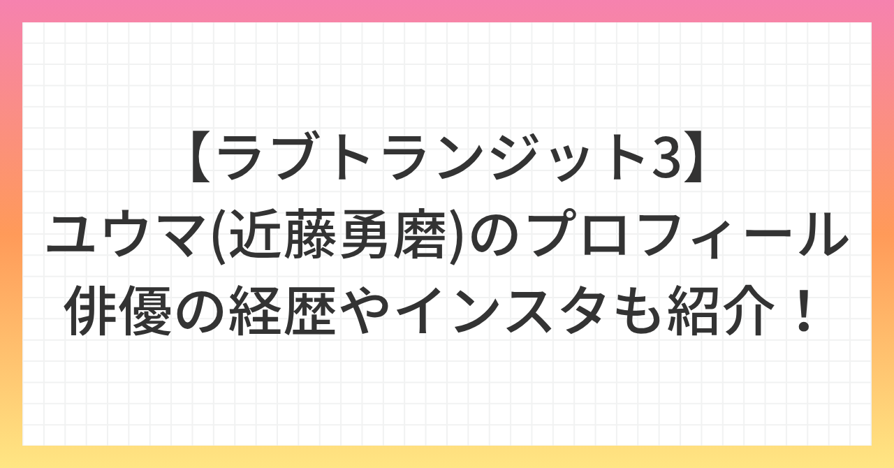 【ラブトランジット3】ユウマ(近藤勇磨)の経歴まとめ